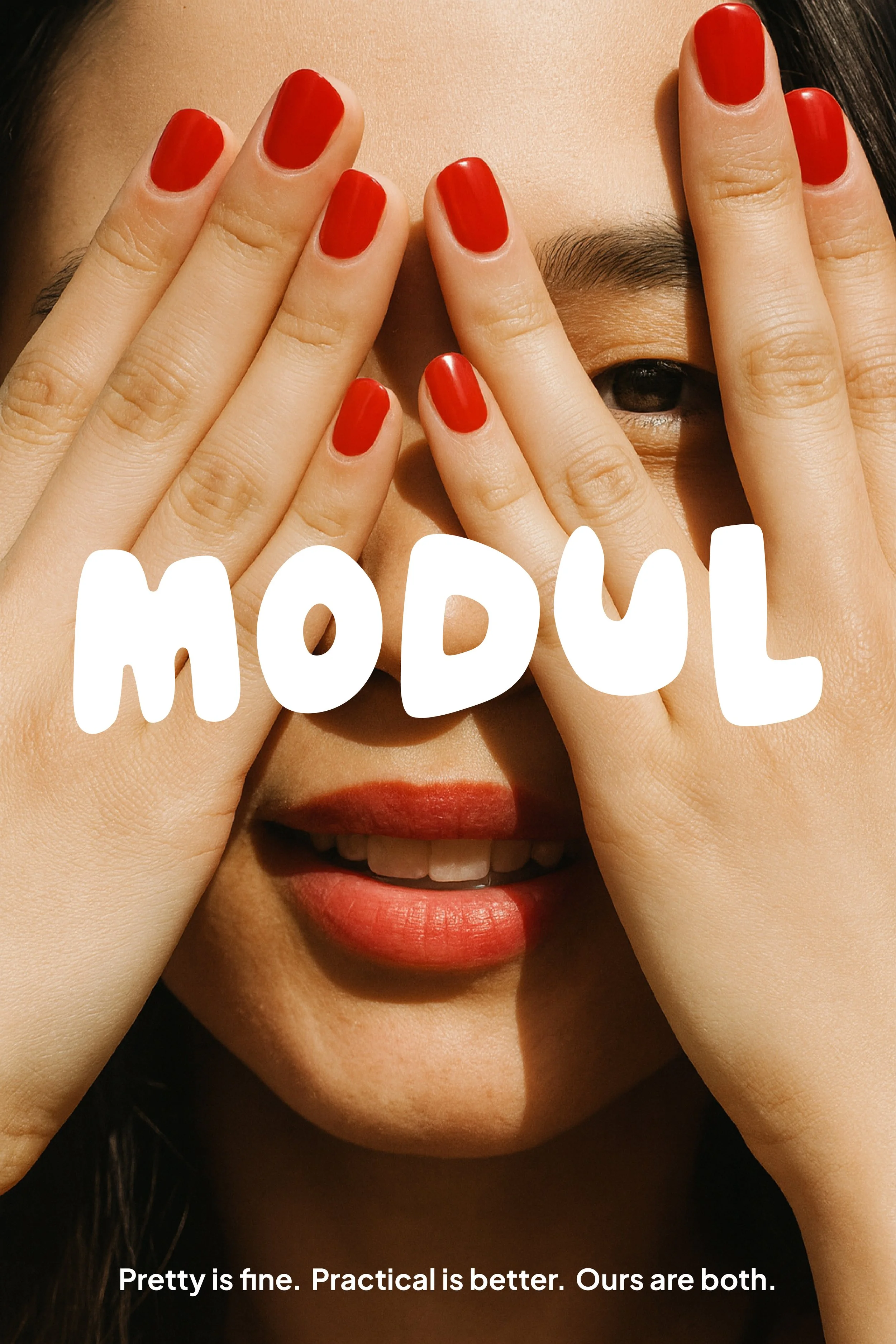 Modul is the next evolution of nails. Not a brand, a system. A clasp-based nail architecture where pieces clip on and off — secure when you need them, gone when you don’t. The brand had to mirror that same modularity: interchangeable, intelligent, and built for evolution..